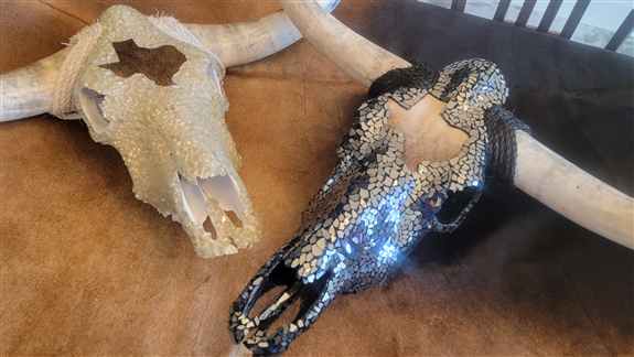 Disabled Veteran-Owned and Operated. Small business in North Texas offering Mosaic glassed Authentic Texas Longhorn, Buffalo, and Steer skulls. Best prices on XL Cowhides and we offer blank skulls too!Yes we ship anywhere in the US.